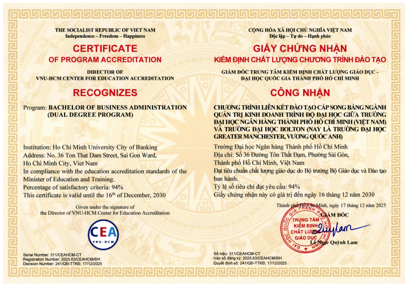 Chương trình đào tạo liên tục được cập nhật, đáp ứng các yêu cầu của nhà tuyển dụng, cũng như những thách thức của môi trường làm việc toàn cầu.