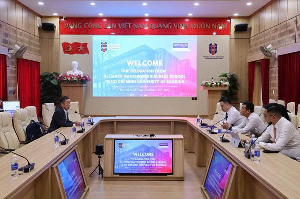 Ngày 13/11/2025, Trường Đại học Ngân hàng TP. Hồ Chí Minh (HUB) đã có buổi làm việc cùng Trường Kinh doanh Alliance Manchester (AMBS) thuộc Đại học Manchester (Vương quốc Anh) nhằm thảo luận các cơ hội hợp tác trong lĩnh vực đào tạo, nghiên cứu và phát triển nguồn nhân lực chất lượng cao trong bối cảnh hội nhập quốc tế.