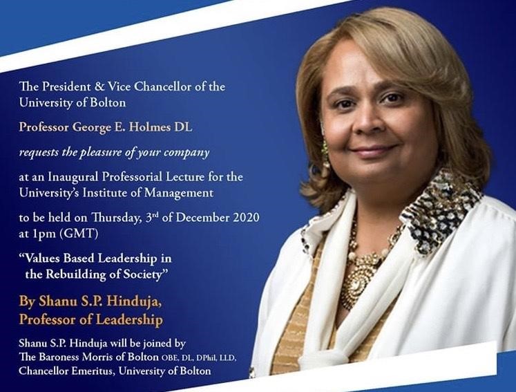 “Ai cũng có thể làm lãnh đạo. Tại sao không?!” Câu nói mang đầy động lực tích cực này là lời mở màn bài diễn văn của Giáo sư về Lãnh đạo Shanu S.P. Hinduja trong buổi lễ nhậm chức được tổ chức bởi đại học Bolton (Anh Quốc) – đối tác đào tạo hơn 15 năm qua của Viện SaigonISB – Đại học Ngân hàng TP.HCM vào ngày 3/12/2020, với chủ đề “Lãnh đạo dựa trên giá trị trong hành trình tái cơ cấu xã hội”. Buổi lễ được tổ chức trực tuyến, thu hút sự tham gia của hơn 250 người tham dự tại hơn 50 quốc gia.