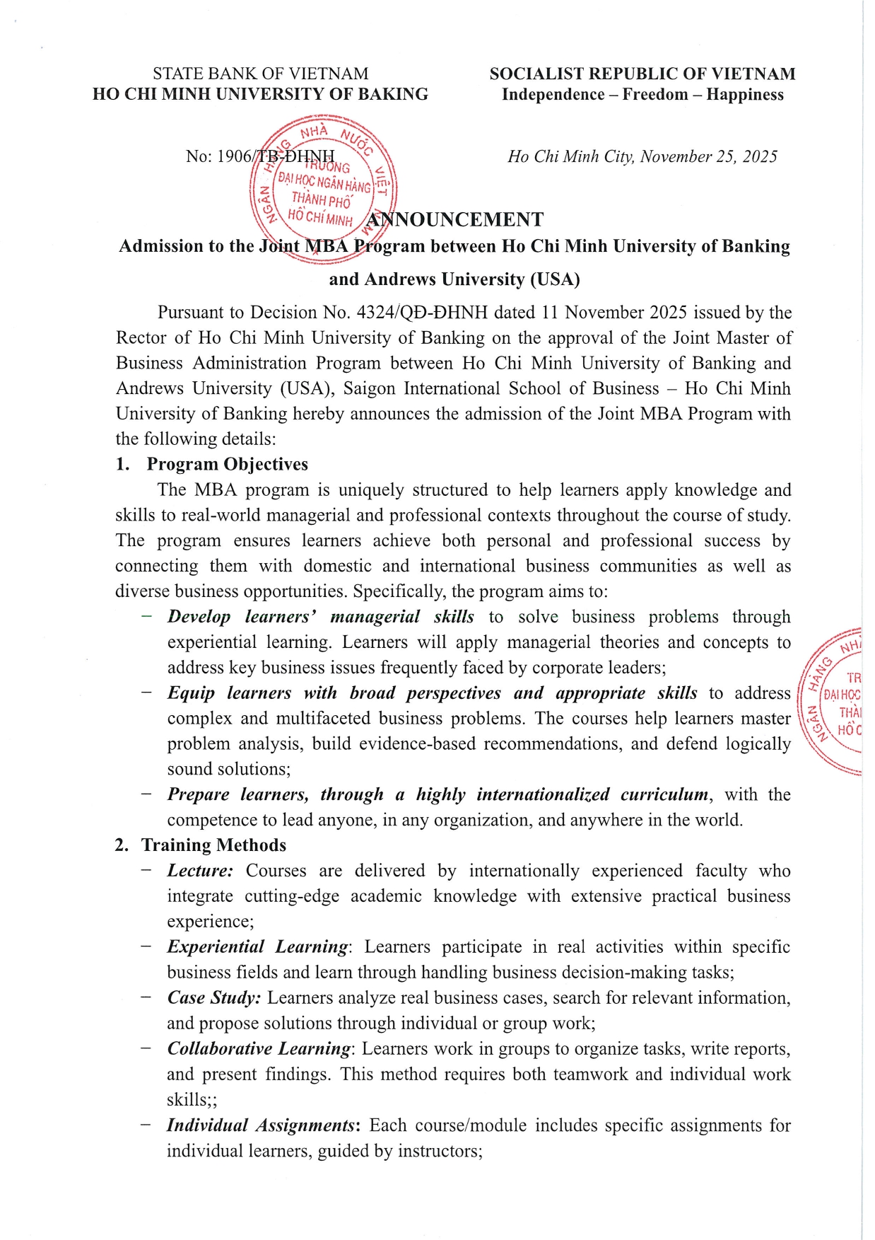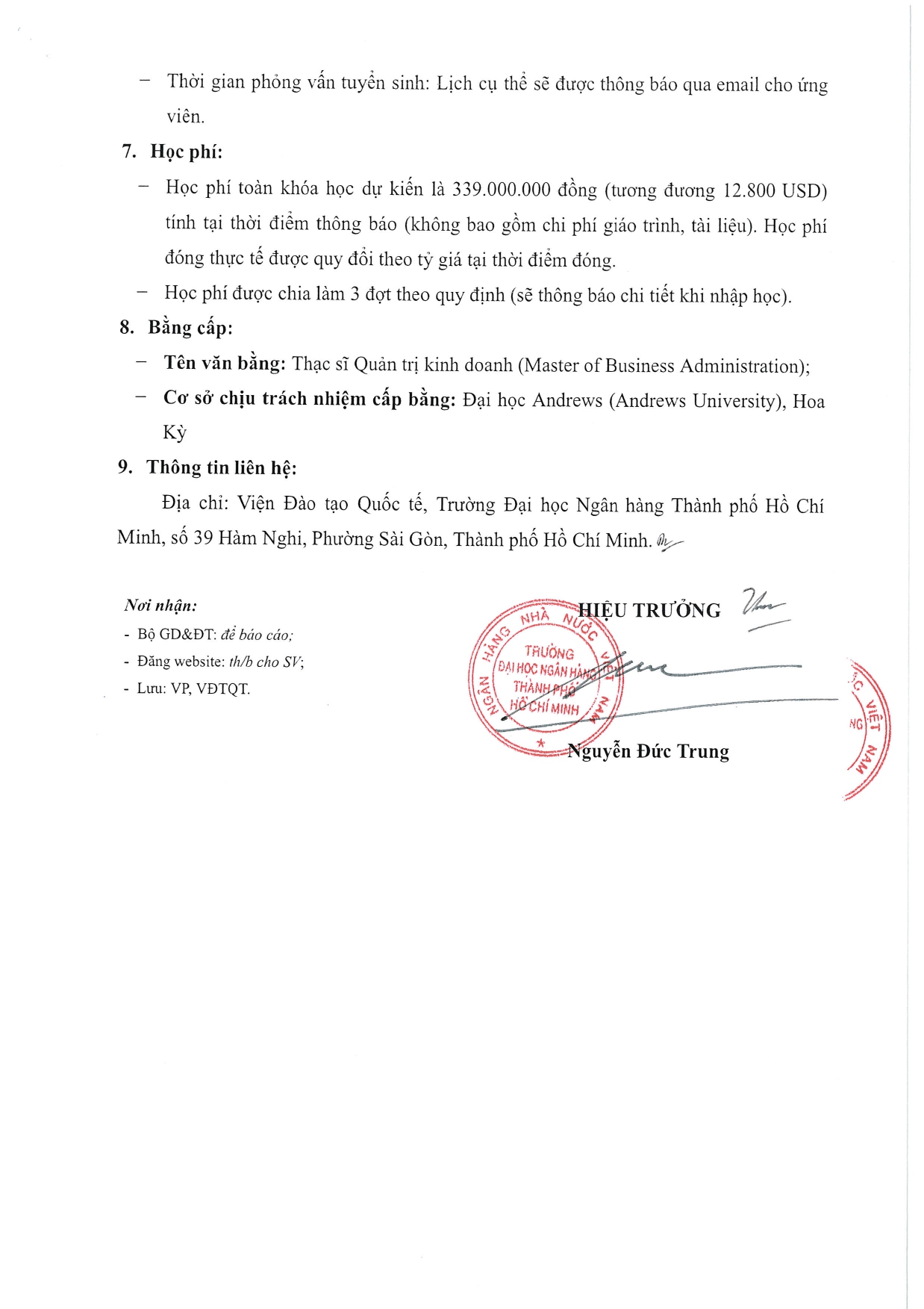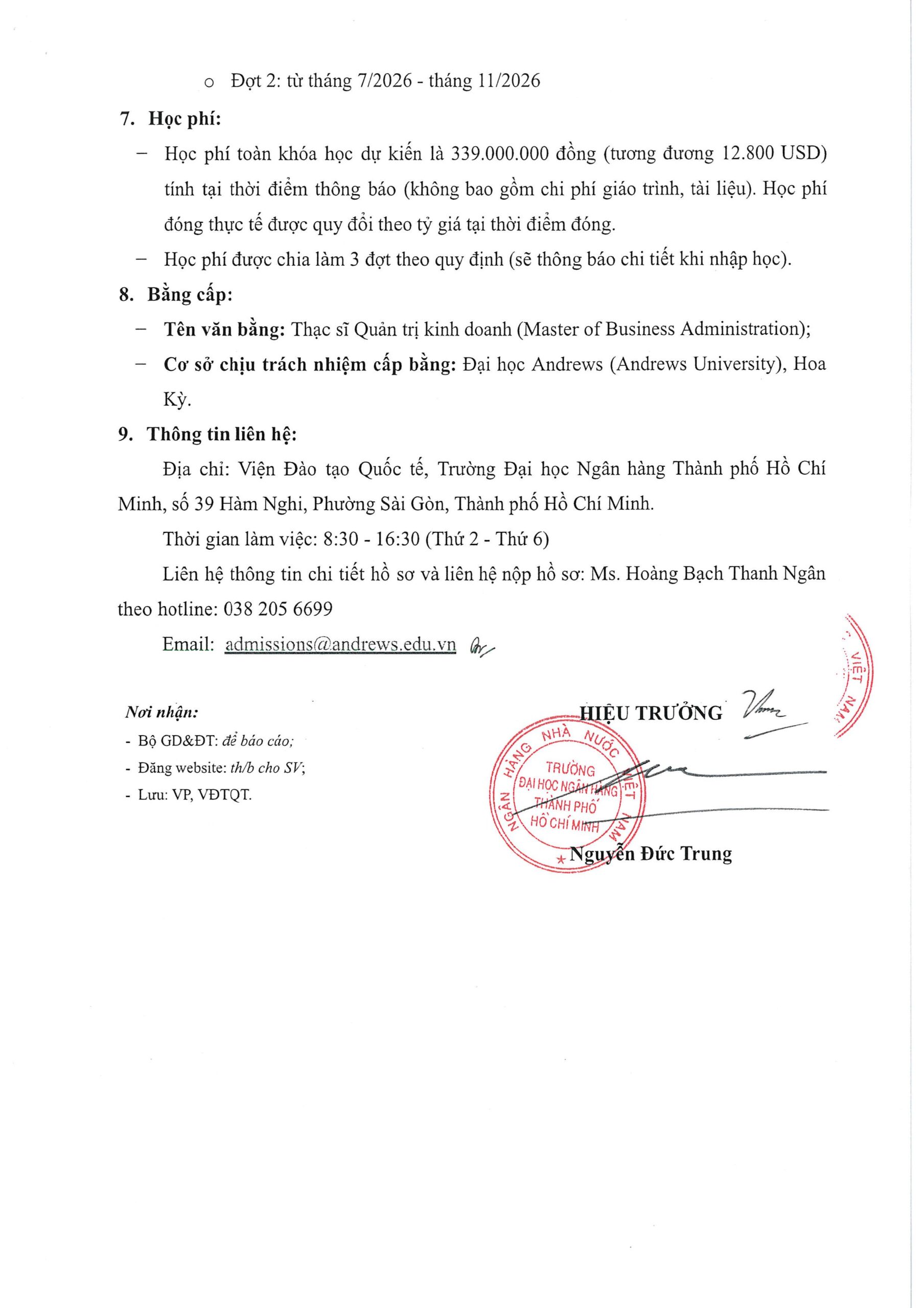 Tin tức Thông báo tuyển sinh chương trình liên kết đào tạo Thạc sĩ Quản trị Kinh doanh giữa Trường Đại học Ngân hàng Thành phố Hồ Chí Minh và Đại học Andrews (Hoa Kỳ) 26 Th11