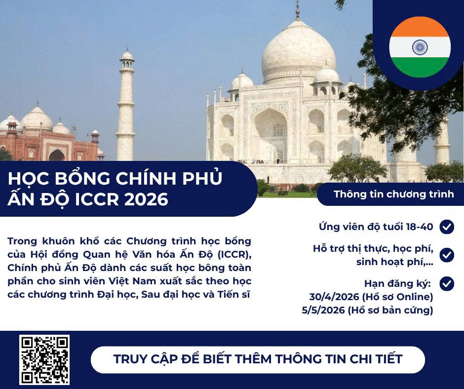 Học bổng chính phủ Ấn Độ 2026: