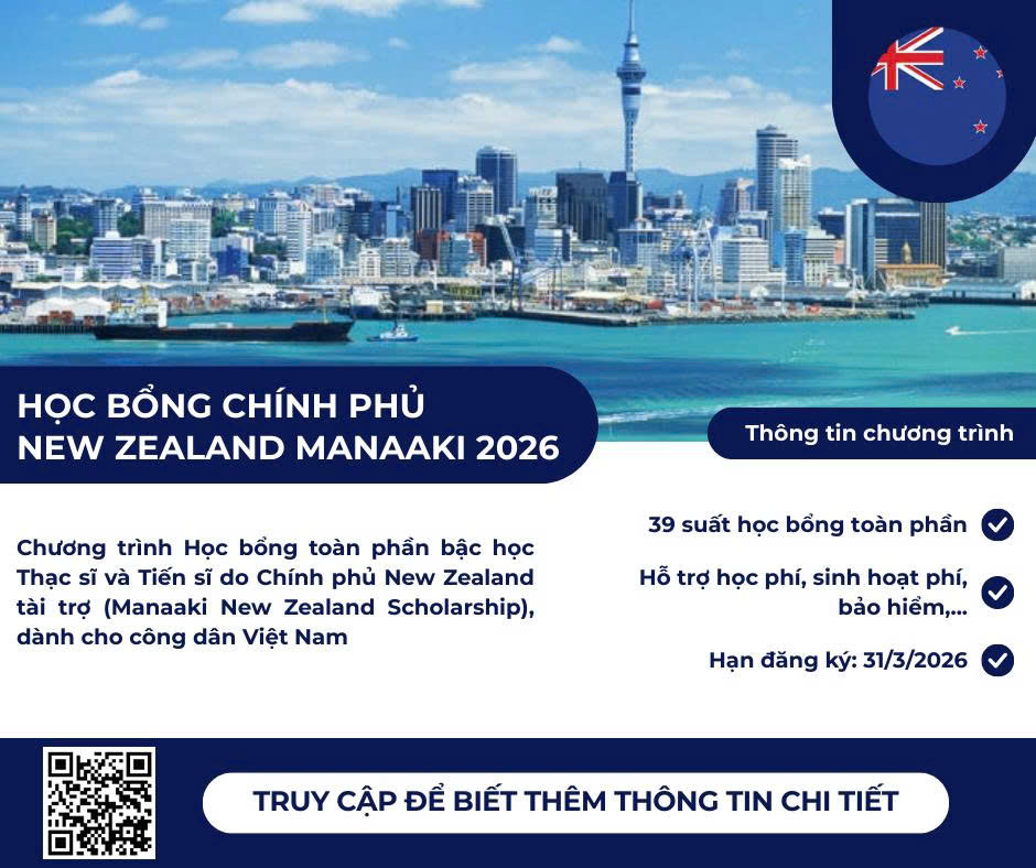 Học bổng chính phủ New Zealand Manaaki 2026: