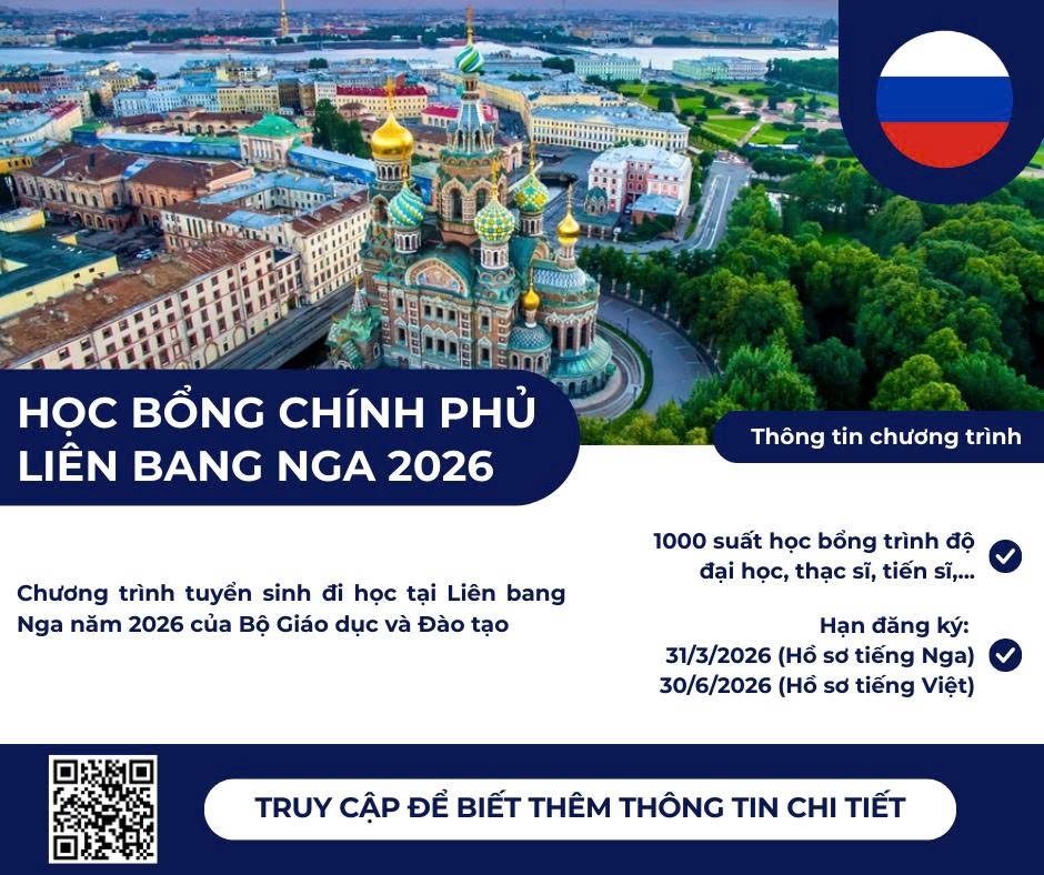 Học bổng chính phủ Nga 2026: