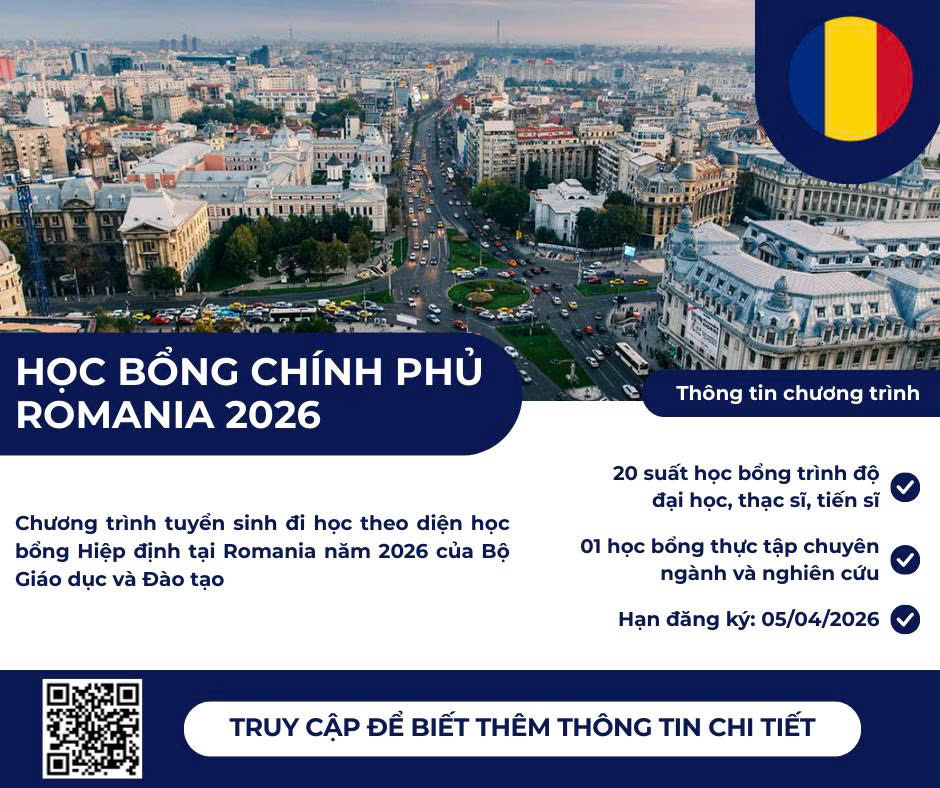 Học bổng chính phủ Ru-ma-ni 2026: