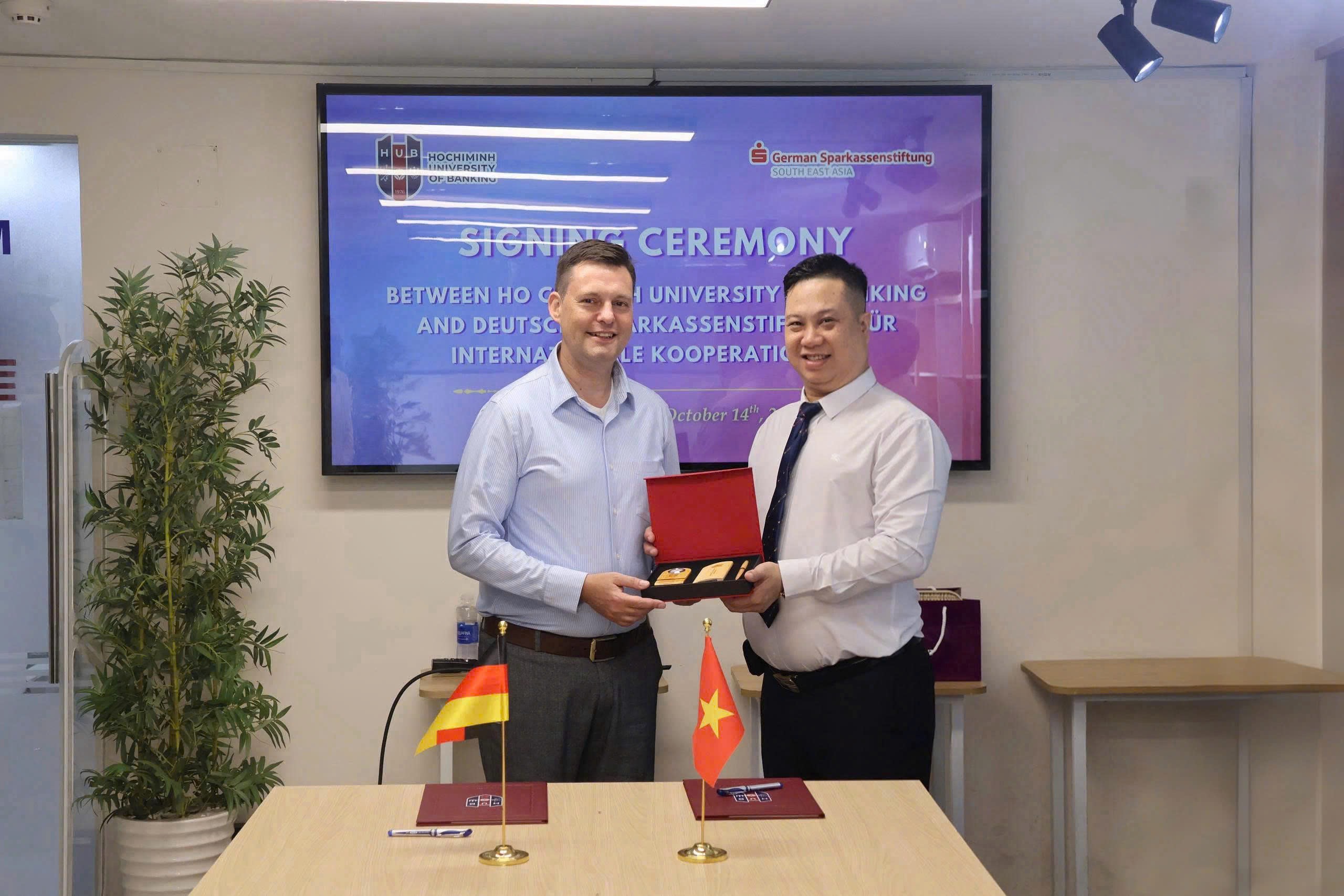 Nhằm khẳng định vai trò của giáo dục vì sự phát triển bền vững, ngày 14/10/2025, Trường Đại học Ngân hàng TP. Hồ Chí Minh (HUB) đã tổ chức lễ ký kết Dự án “Chuyển đổi xã hội – sinh thái trong lĩnh vực tài chính tại một số quốc gia Châu Á” hợp tác với Tổ chức Deutsche Sparkassenstiftung für Internationale Kooperation (DSIK) dưới sự tài trợ của Bộ Hợp tác và phát triển Kinh tế Liên bang Đức (BMZ). Sự kiện đánh dấu bước phát triển mới trong quan hệ hợp tác giữa hai bên, hướng đến mục tiêu nâng cao năng lực tài chính, tinh thần khởi nghiệp và tích hợp Tài chính số, Giáo dục tài chính bền vững vào chương trình học cho sinh viên HUB.